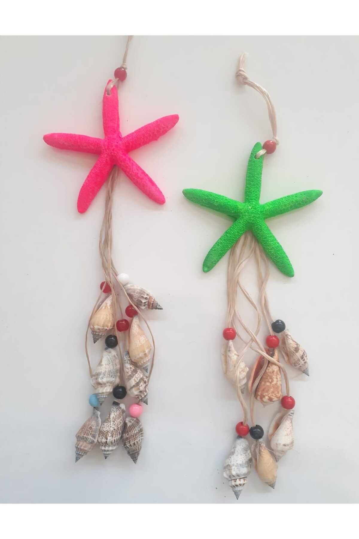 2'Li Deniz Yıldızı Figürlü Deniz Kabuklu Jüt İpli Duvar Bahçe Balkon Teras Süsü Seti