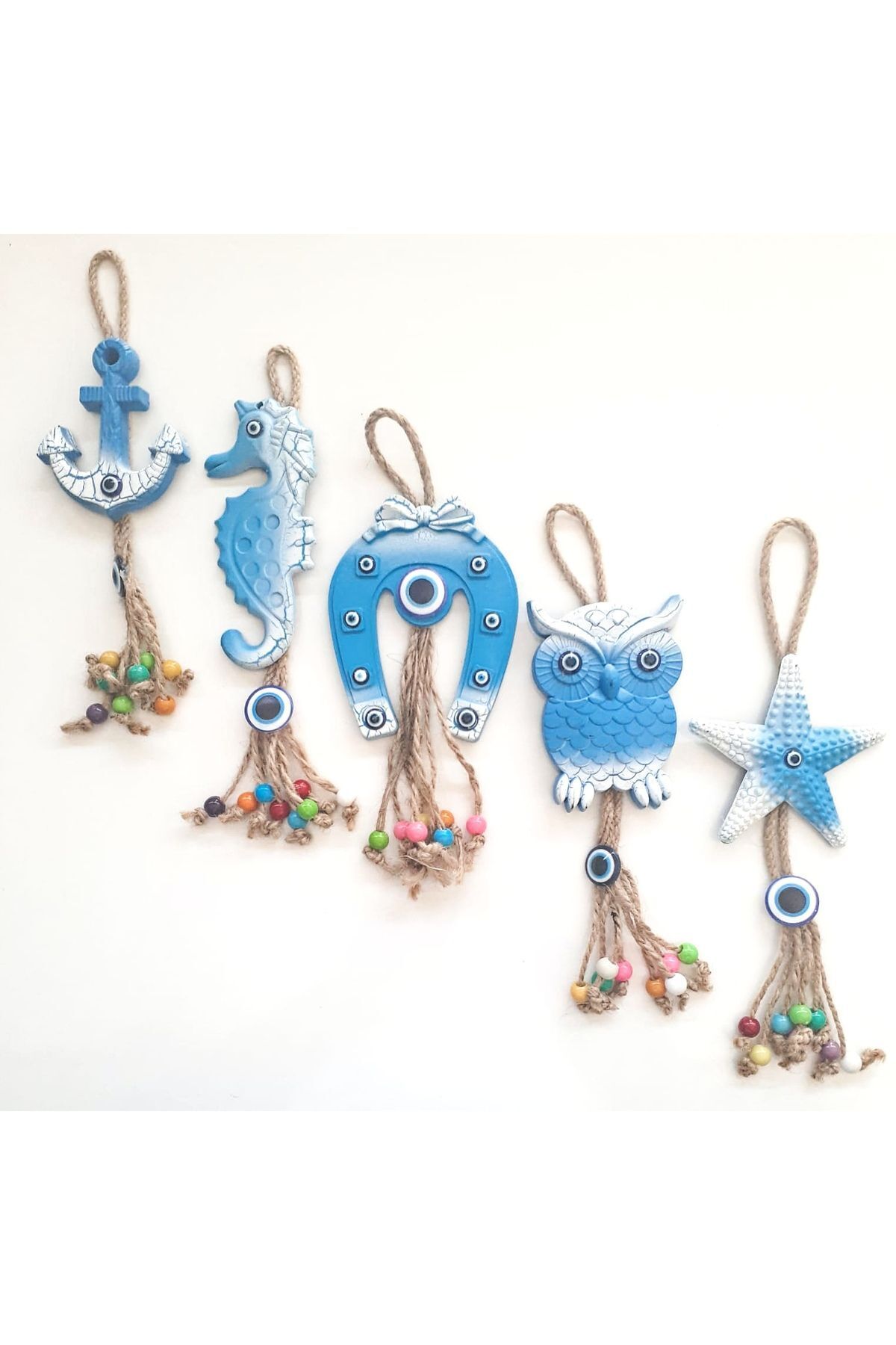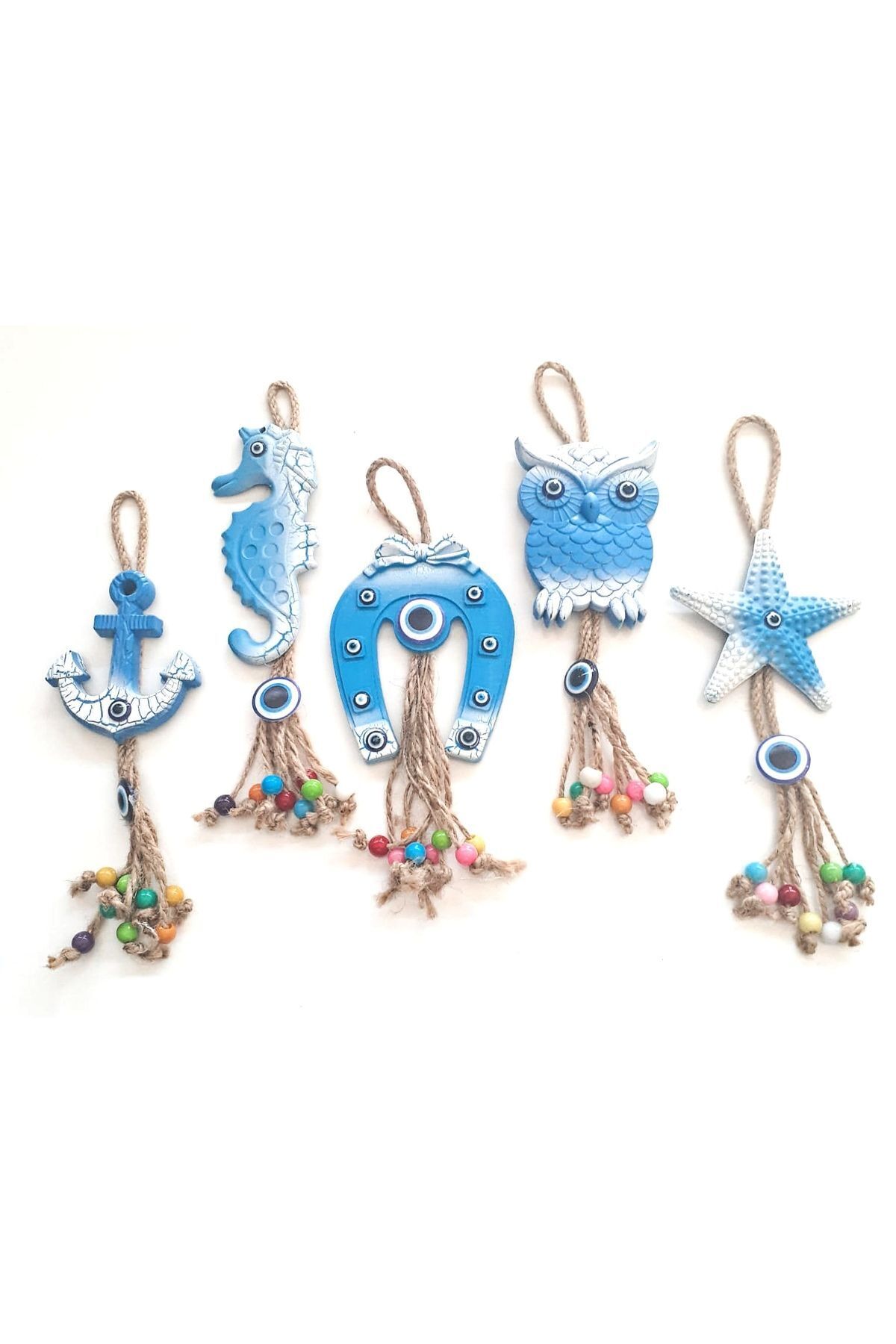 5'Li Marin Temalı Nazar Boncuklu Jüt İpli Teras Bahçe Balkon Yazlık Duvar Dekorasyon Süsü Seti