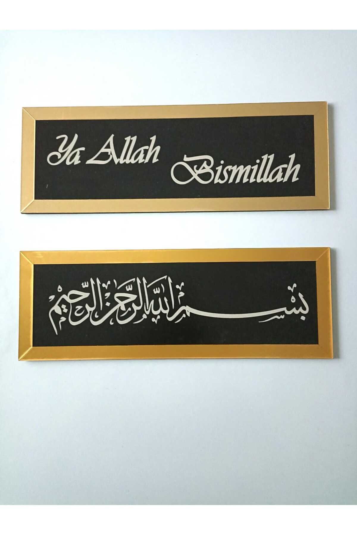 Arapça Ya Allah Bismillah Yazılı İkili Duvar Tablo Dekorasyon Süsü Seti