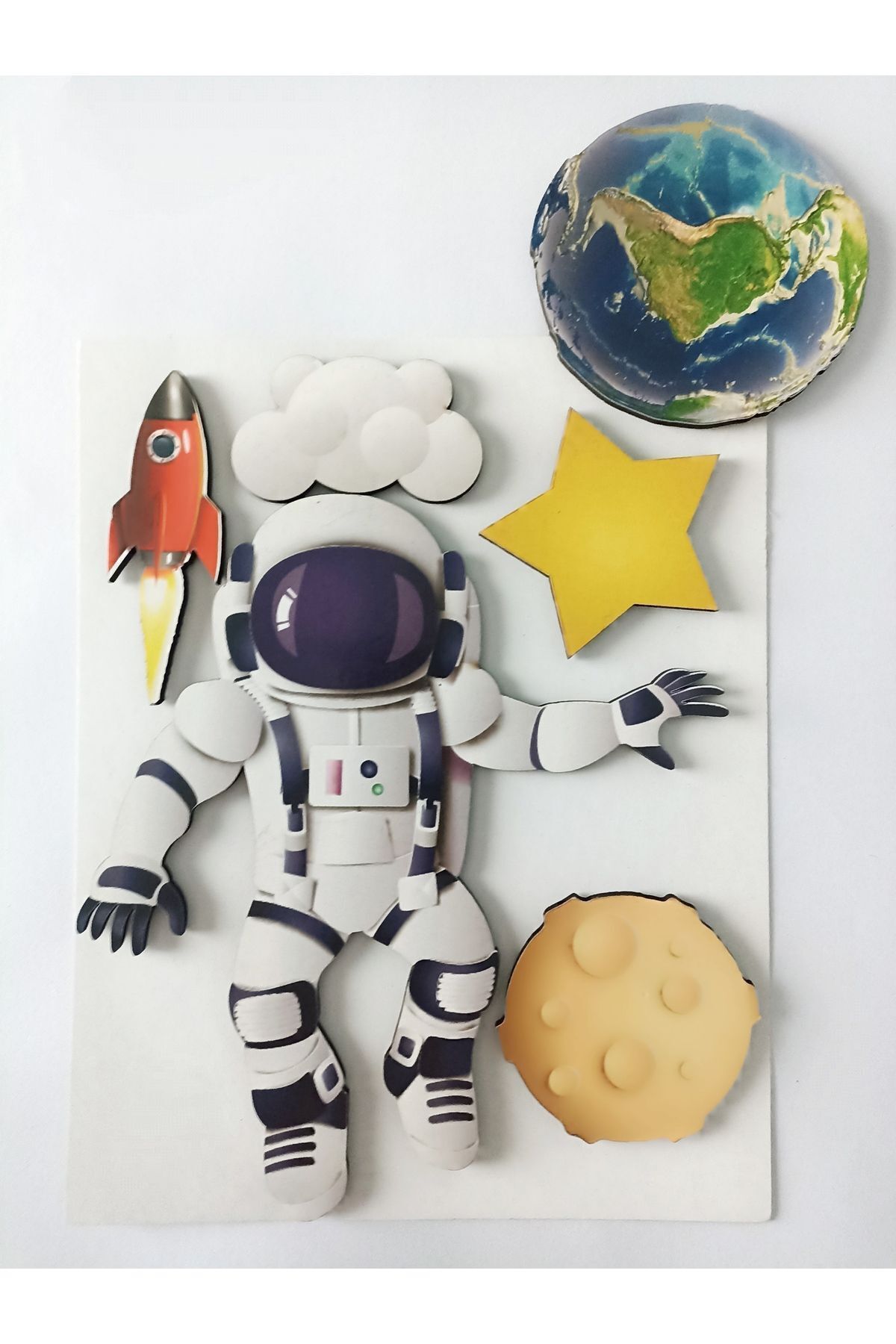 Astronot Ve Uzay Temalı Kapı Duvar Dolap Çocuk Odası Ahşap Yapıştırma Süsü