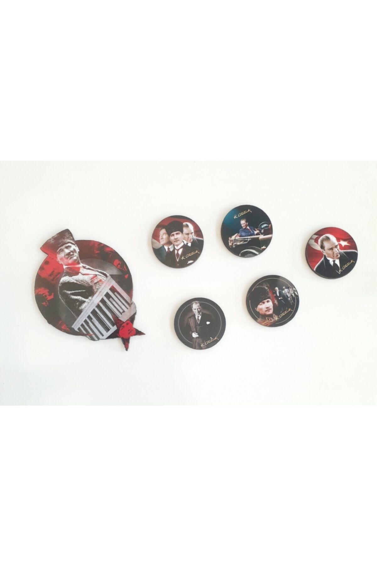 Ay Yıldız Atatürk Baskılı 6'lı Ahşap Duvar Yapıştırma Süsü