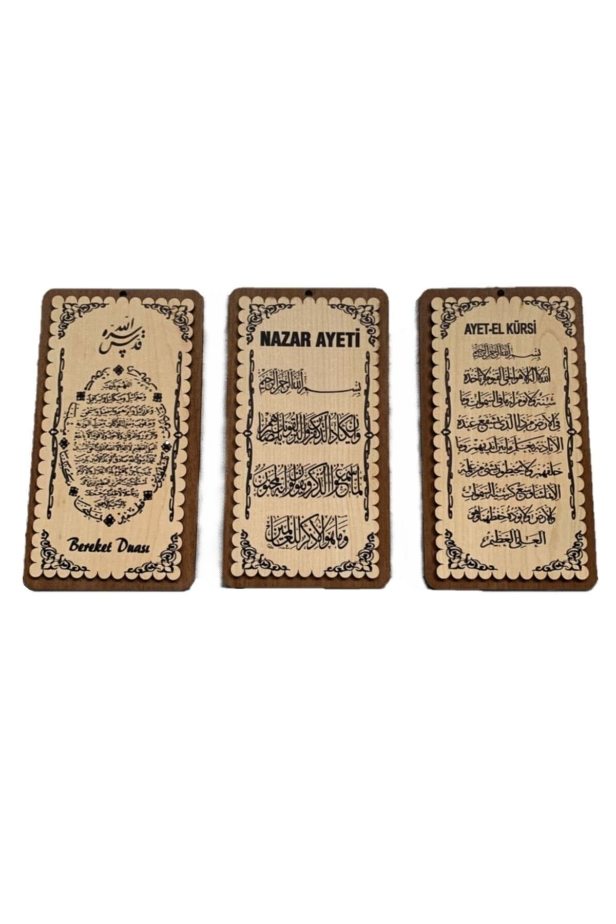 Ayetel Kürsi, Bereket Duası, Nazar Ayeti Yazılı 3ü Bir Arada Ahşap 3 Lü Dua Duvar Dekorasyon
