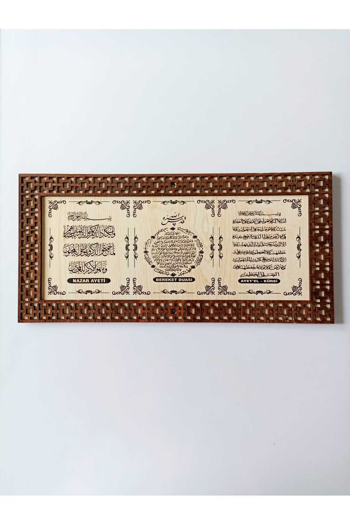 Ayetel Kürsi Nazar Ayeti Bereket Duası Yazılı Ahşap Tablo Duvar Süsü Duvar Dekorasyon 38x18 Cm