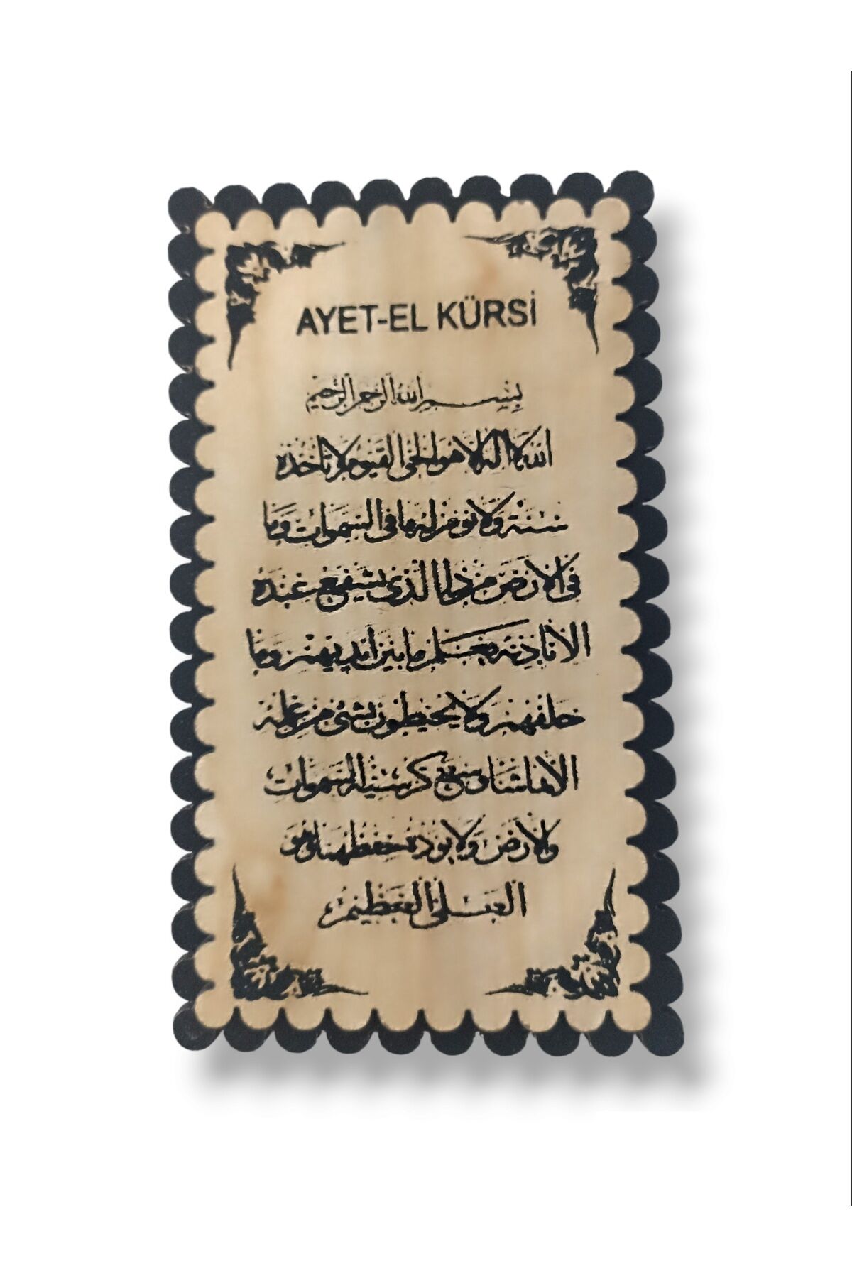 Ayetel Kürsi Yazılı Ahşap Mıknatıslı Buzdolabı Magneti