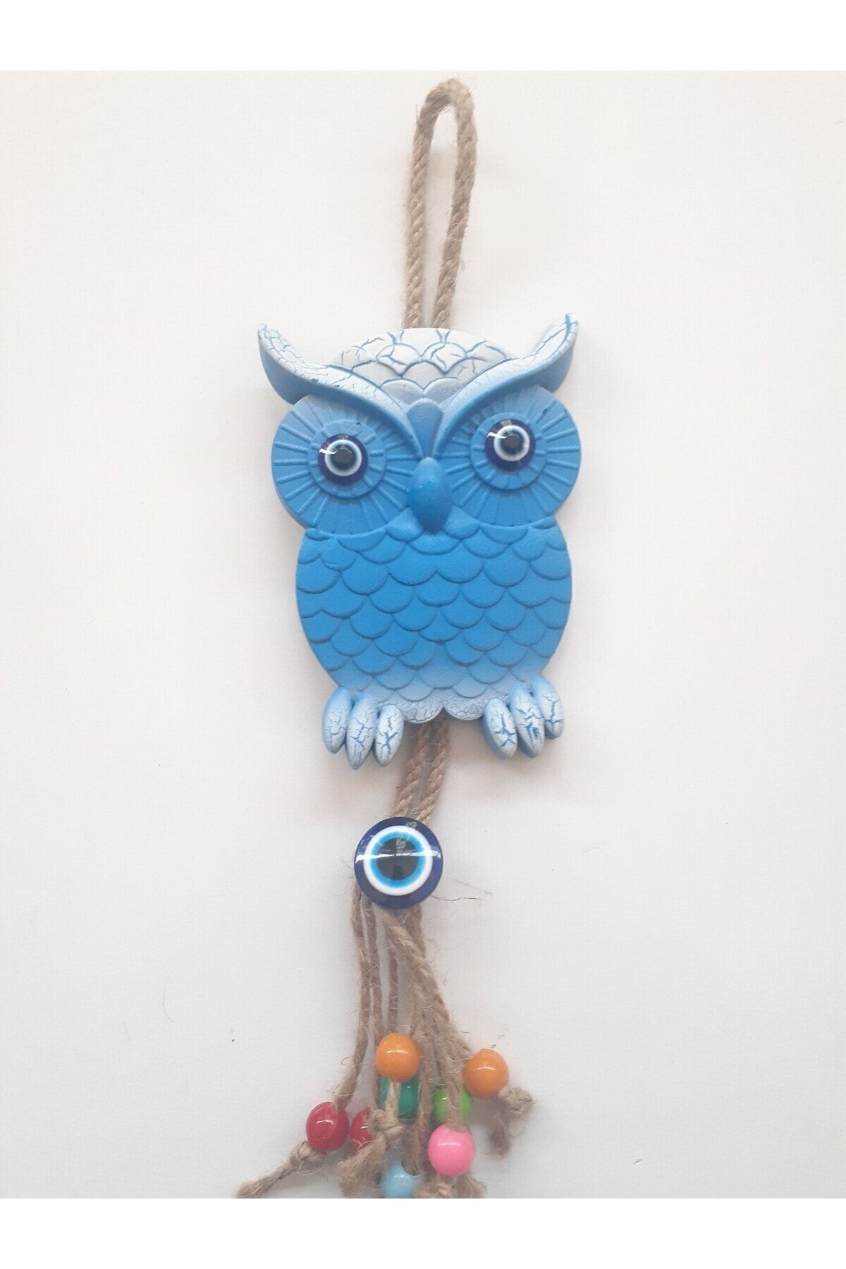 Baykuş Figürlü Nazar Boncuklu Jüt Ipli Teras Bahçe Balkon Yazlık Duvar Süsü Duvar Dekorasyon