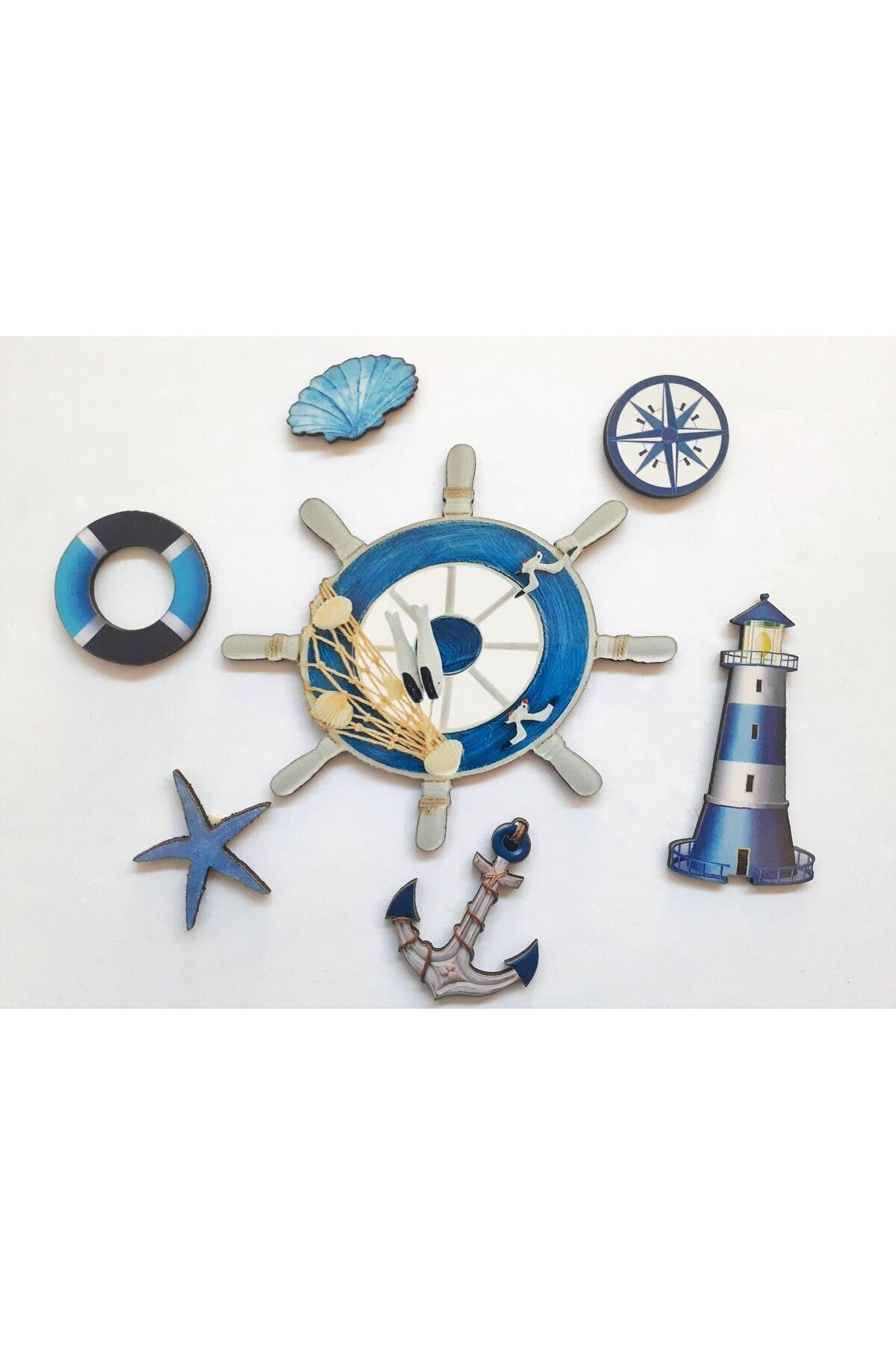 Çapa Dümen Denizci Temalı 7 Parça Ahşap Duvar Dekoru - 7 Parça Set Olarak Gönderilecektir