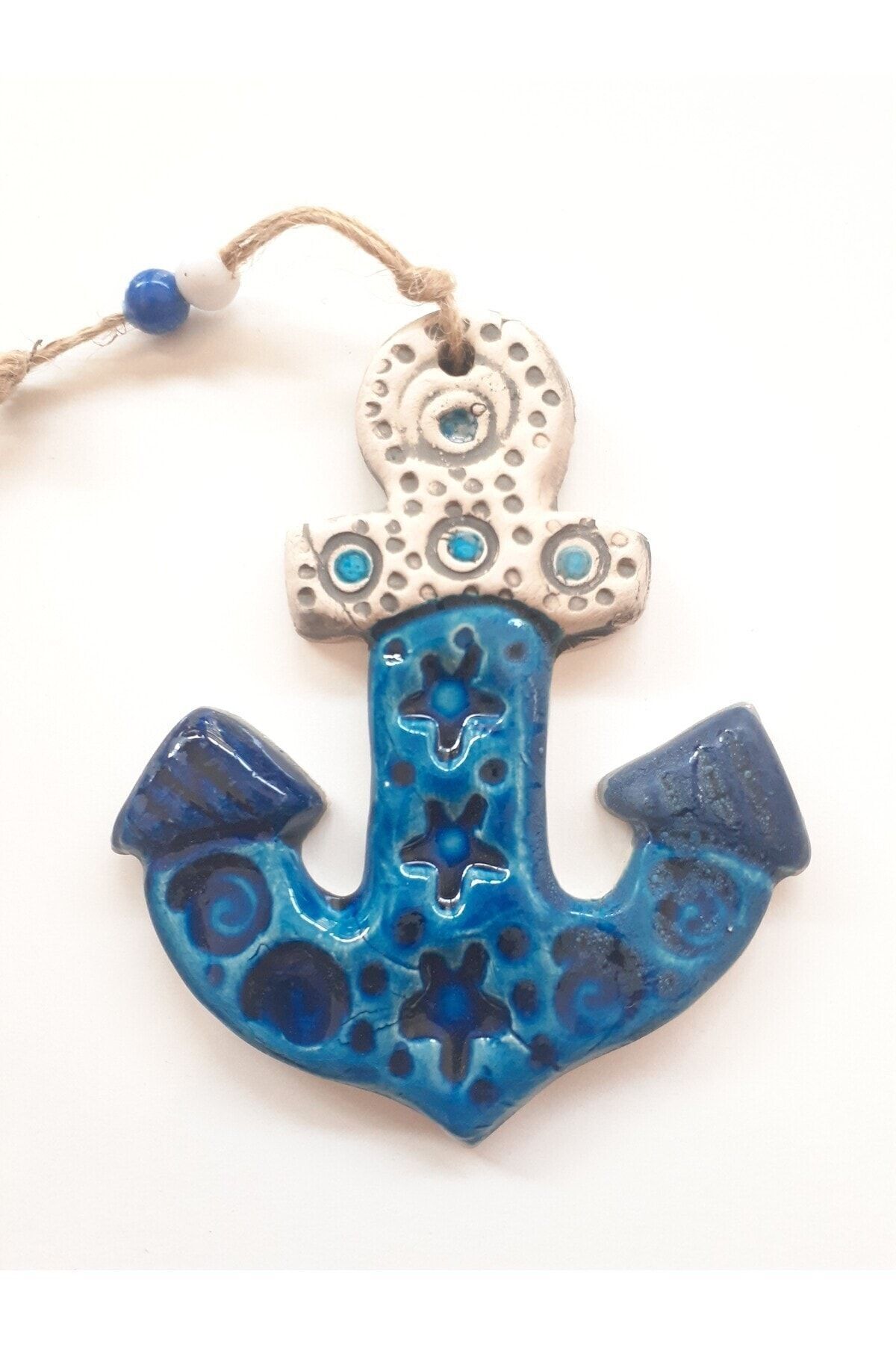 Seramik malzeme kullanılarak üretilmiş, dayanıklı ve uzun ömürlü bir duvar süsüdür; Tek parça halinde gelen bu ürün, kolay montaj imkanı sunar ve ekstra parçalarla uğraşmanıza gerek kalmaz; Çapa figürü ve nazar boncuğu detaylarıyla süslenmiş, bahçe, teras veya balkon gibi dış mekanlarda estetik bir görünüm sağlar;