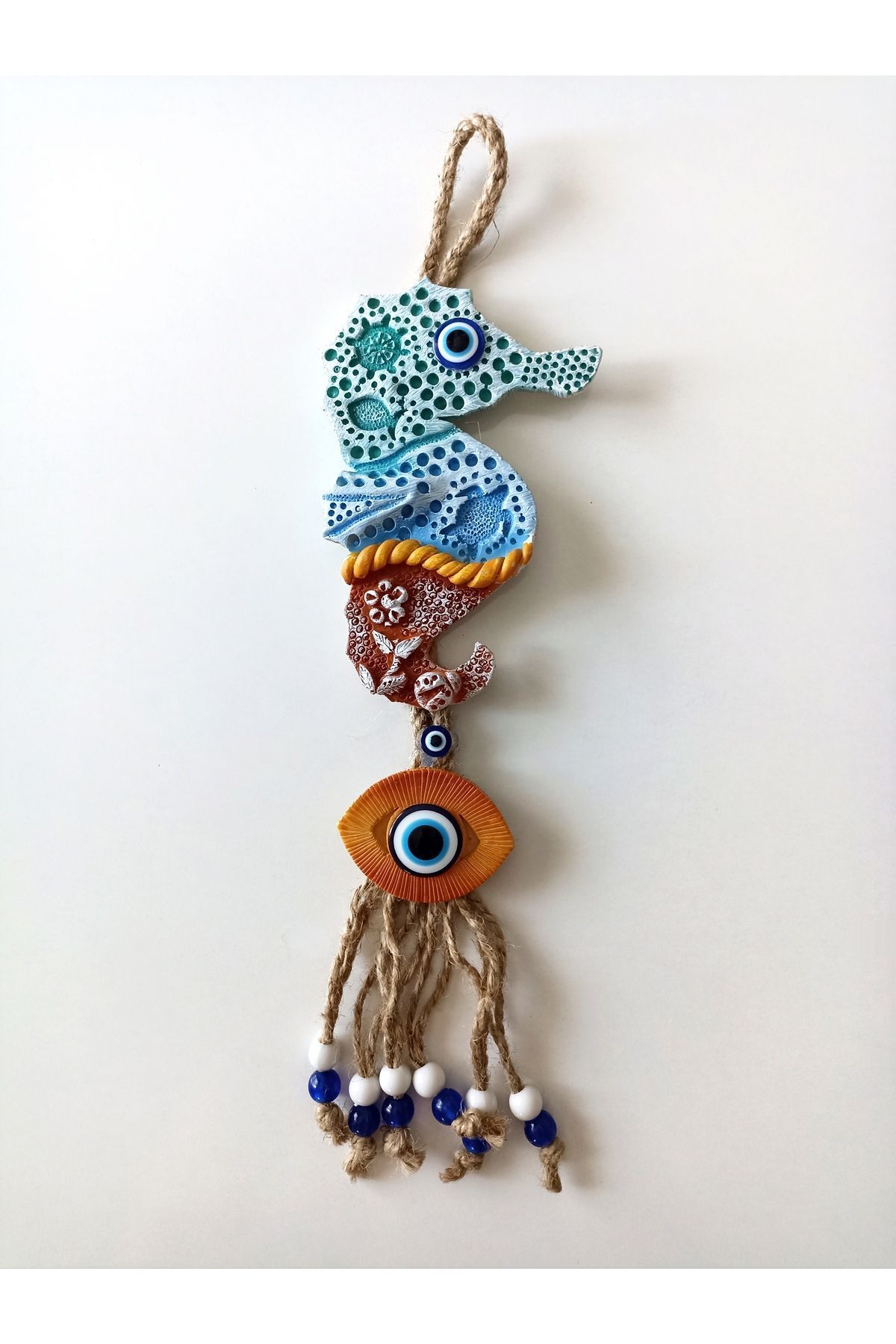 Deniz Atı Figürlü Nazar Boncuklu Jüt İpli Teras Bahçe Balkon Yazlık Duvar Süsü