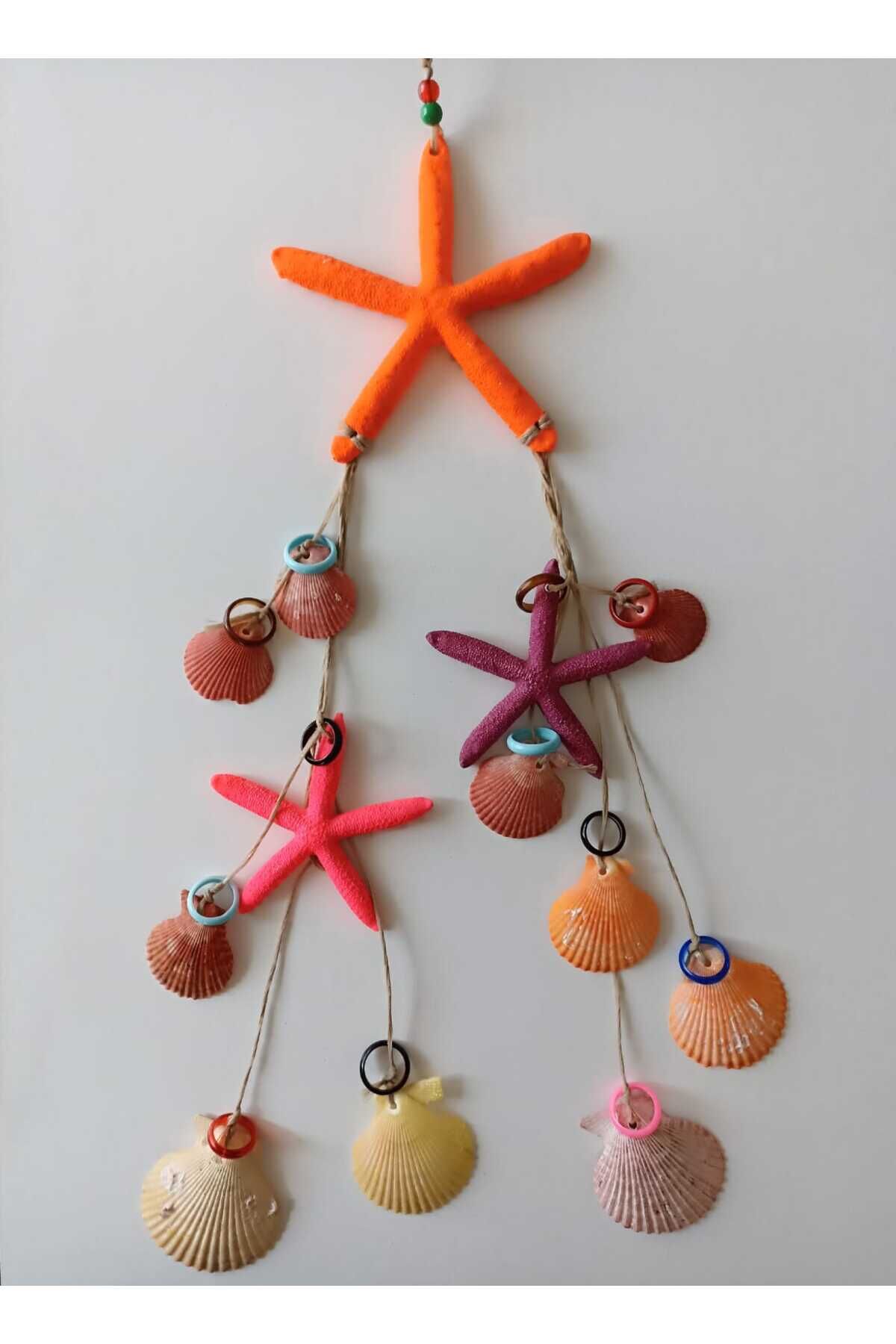 Deniz Kabuklu Üçlü Deniz Yıldızı Figürlü Jüt İpli Teras Bahçe Balkon Yazlık Duvar Dekorasyon Süsü