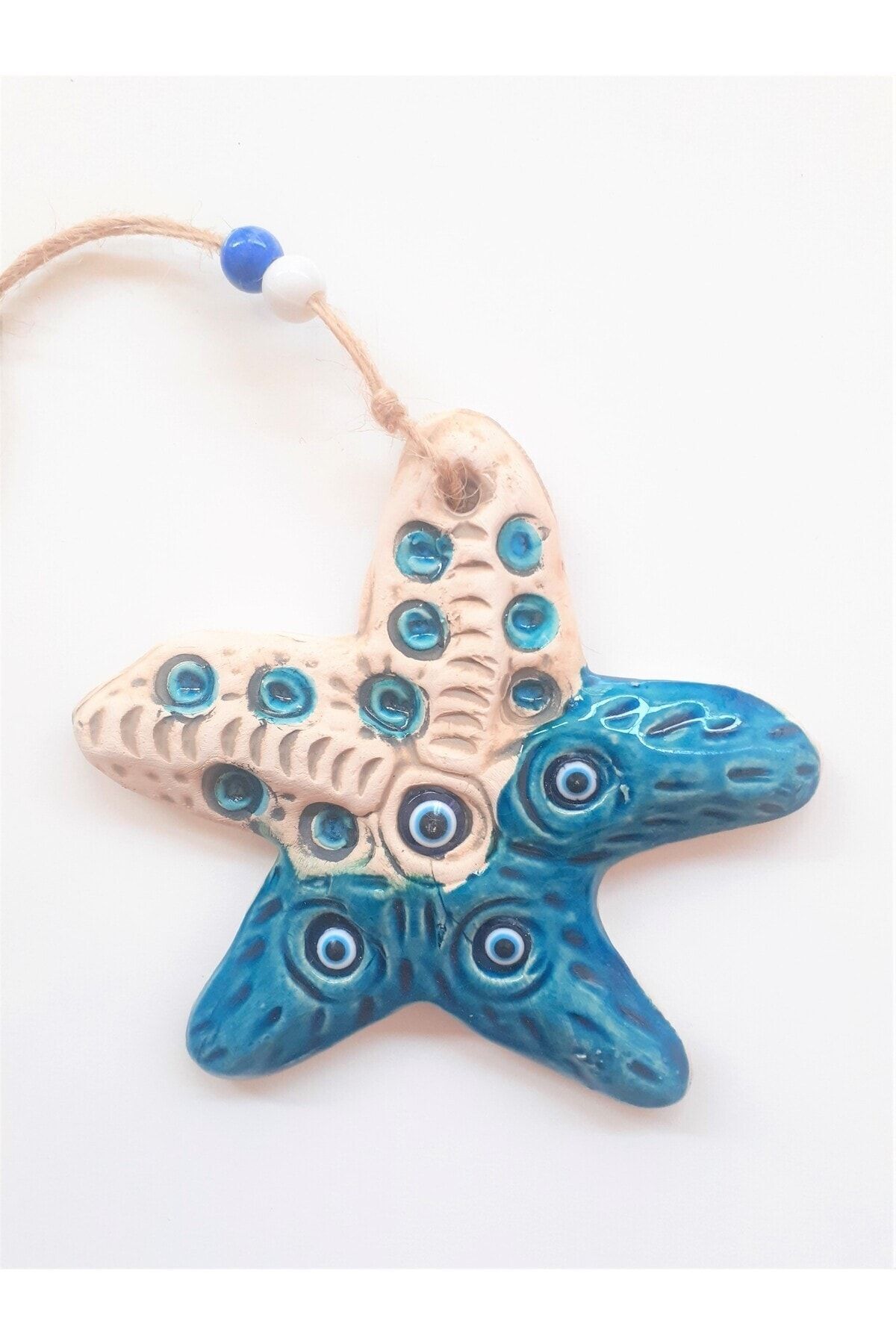 Deniz Yıldızı Figürlü Nazar Boncuklu Jüt Ipli Teras Bahçe Balkon Yazlık Duvar Süsü