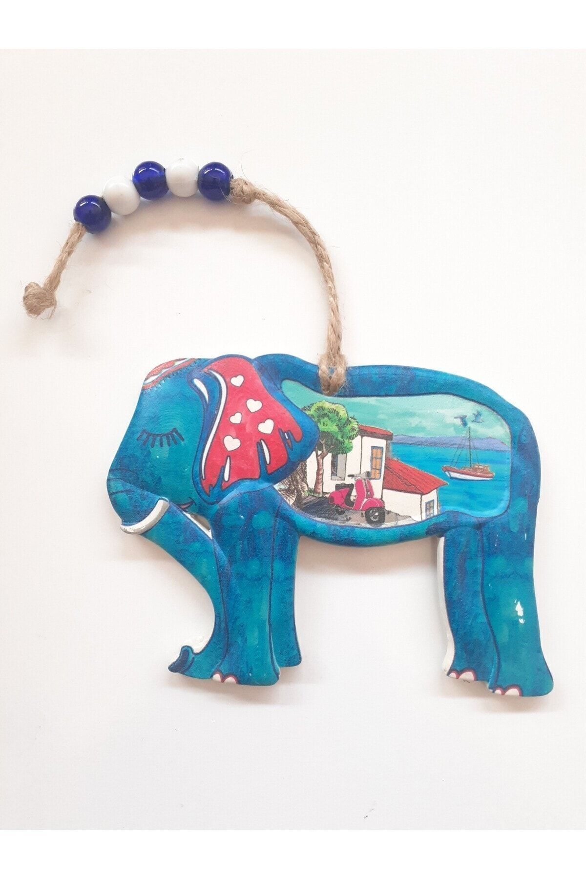 Fil Figürlü Nazar Boncuklu Jüt Ipli Teras Bahçe Balkon Yazlık Duvar Süsü