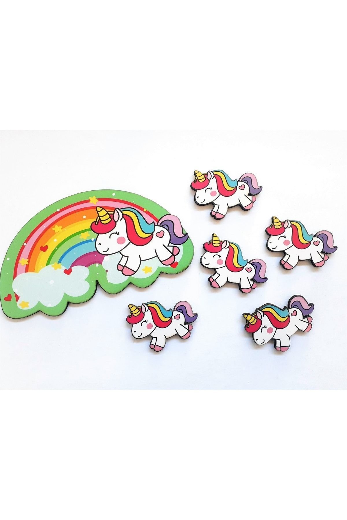 Gökkuşağı Ve Unicorn Figürlü Kapı Duvar Dolap Çocuk Odası Ahşap Yapıştırma Süsü Duvar Dekorasyon