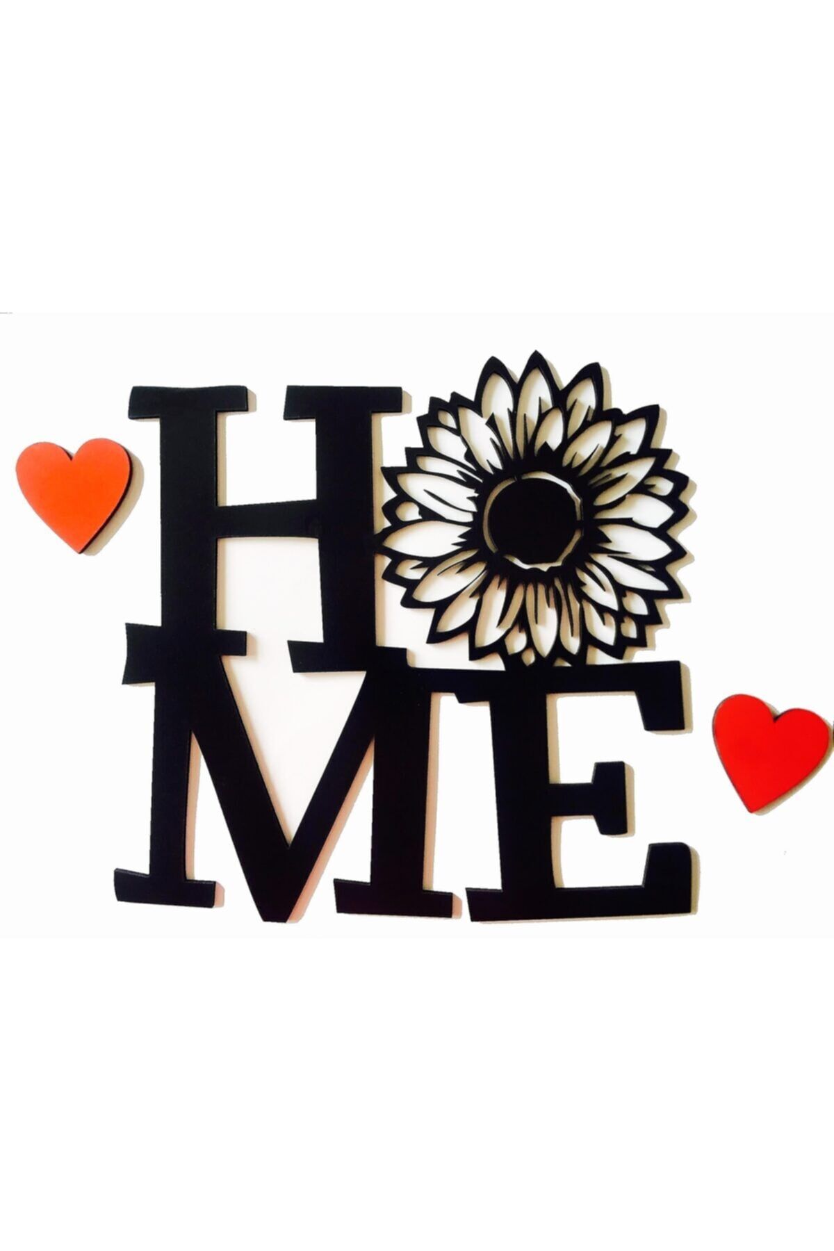 3 mm mdf den üretilmiş olup her parçanın arkasında çift taraflı bant bulunmaktadır. Ürün Boyutları Çiçekli Home yazısı: 24x24,5 cm 2 adet kalp: Her biri 5 cm