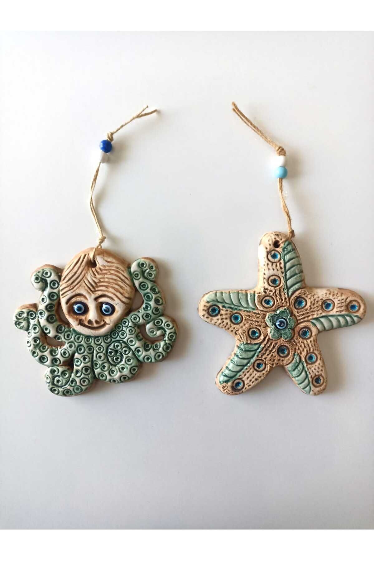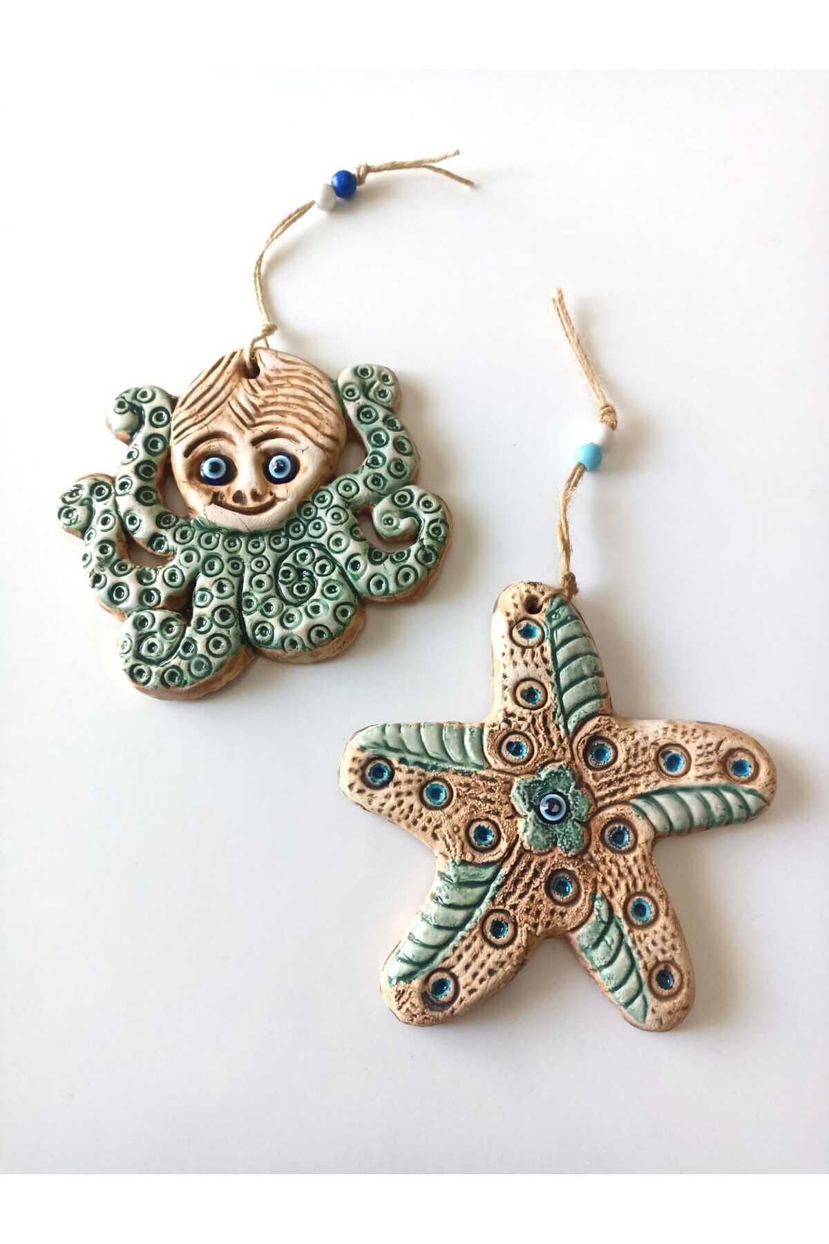 İkili Ahtapot ve Deniz Yıldızı Figürlü Nazar Boncuklu Kapı Bahçe Balkon Teras Duvar Dekorasyon Süsü