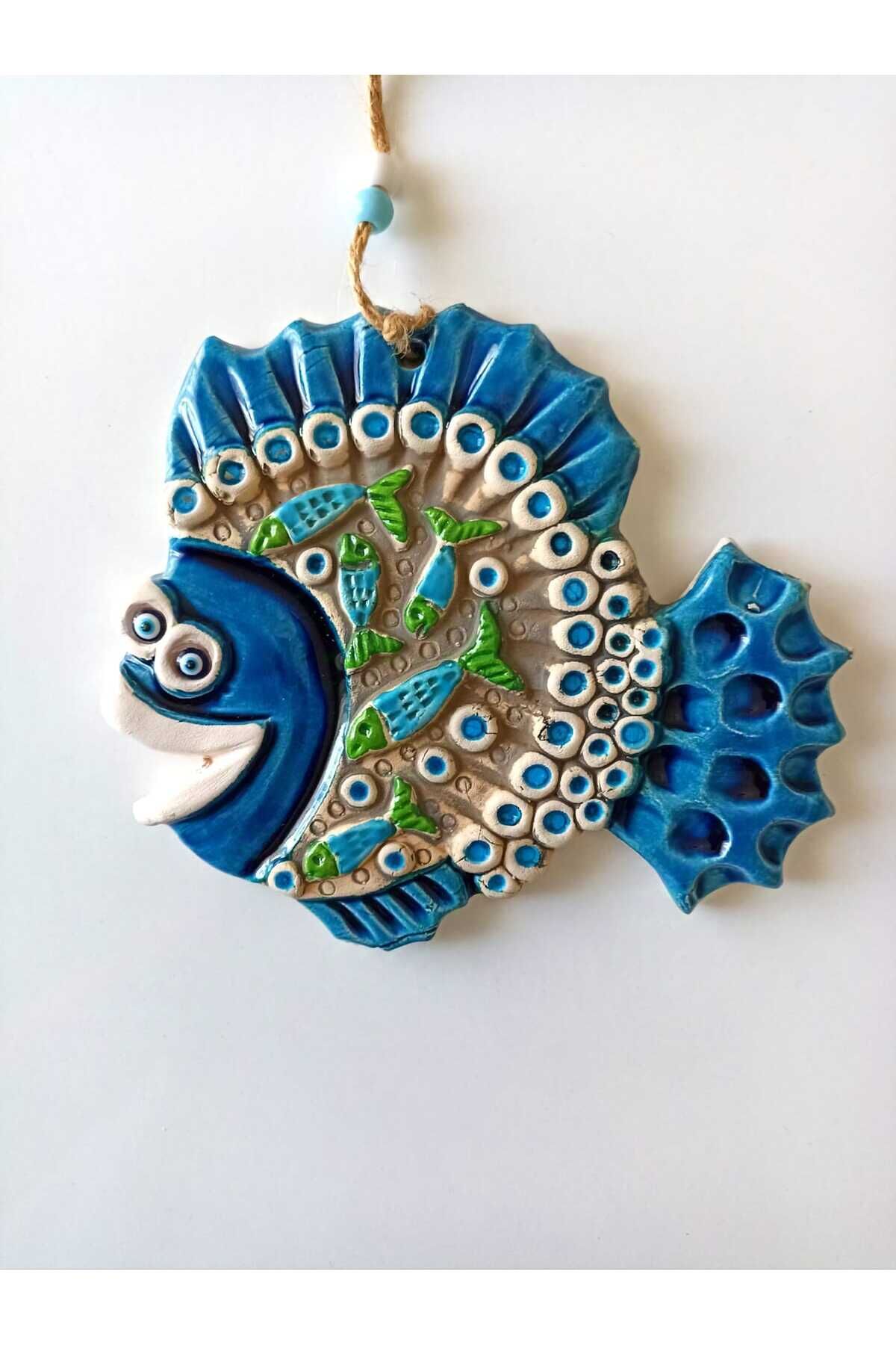 İkili Balık Figür Nazar Boncuklu Jüt İpli Teras Bahçe Balkon Yazlık Duvar Dekorasyon Süsü Seti