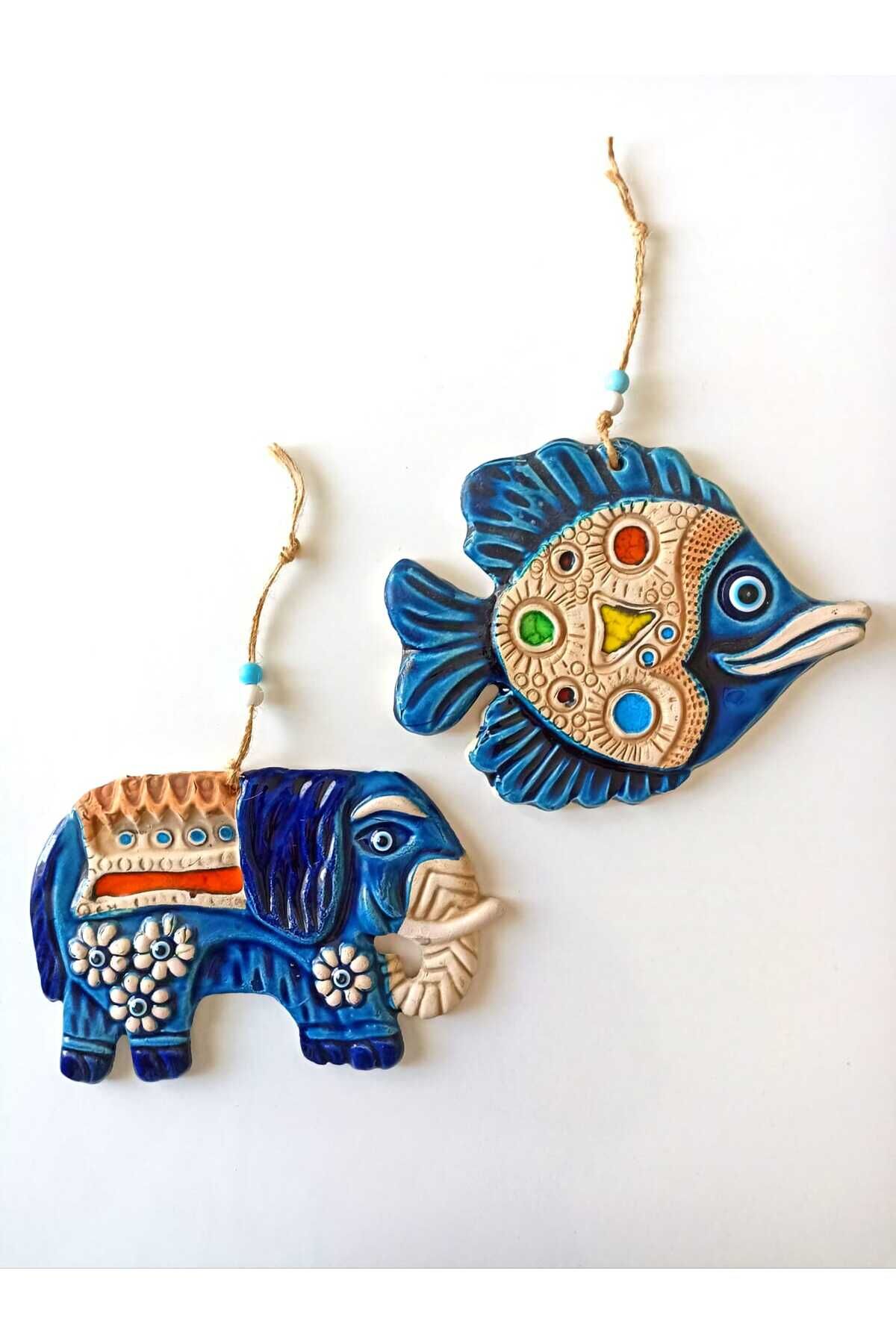 İkili Balık Fil Figür Nazar Boncuklu Jüt İpli Teras Bahçe Balkon Yazlık Duvar Dekorasyon Süsü Seti