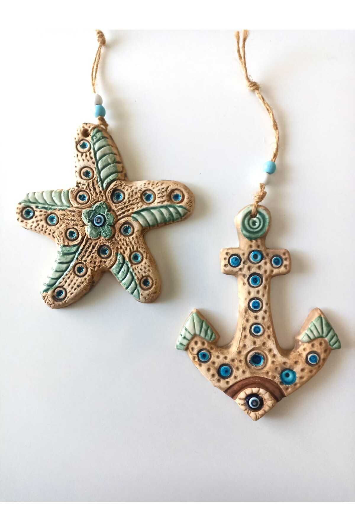 İkili Deniz Yıldızı ve Çapa Figürlü Nazar Boncuklu Kapı Bahçe Balkon Teras Duvar Dekorasyon Süsü