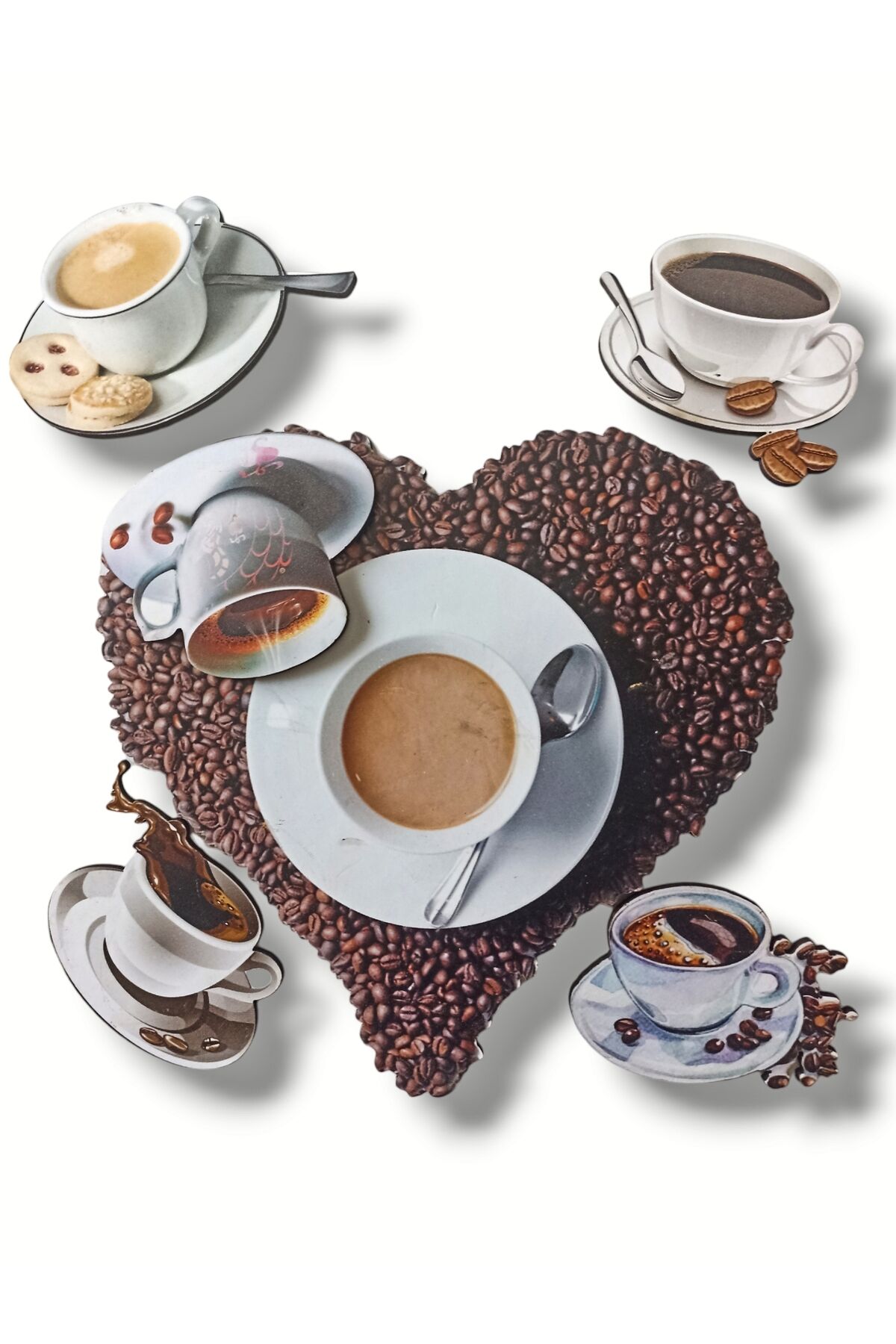 Kahve ve Fincan Figürlü Kapı Duvar Dolap Ahşap Mutfak Kahve Köşesi Duvar Dekorasyon Yapıştırma Süsü