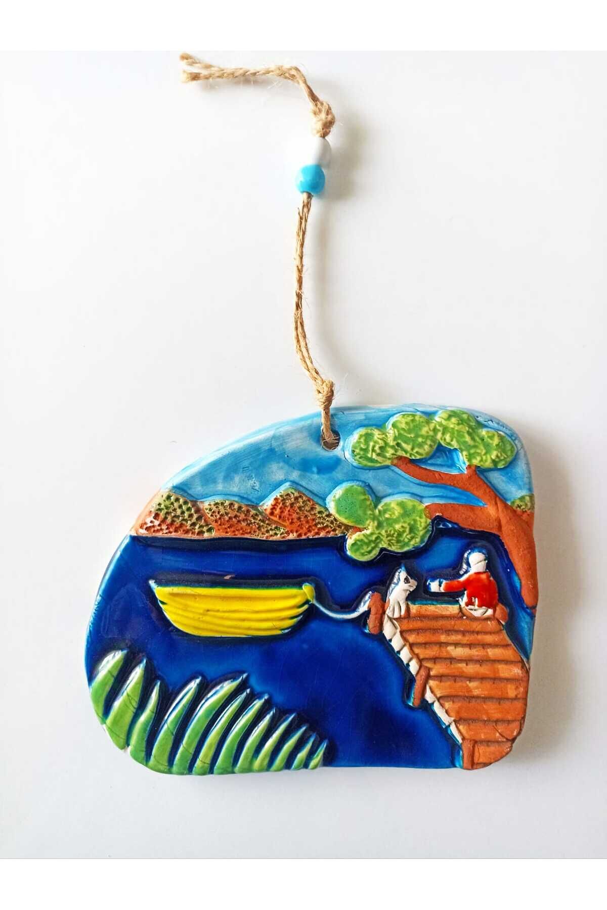Kayık Manzara Deniz Temalı Jüt Ipli Teras Bahçe Balkon Yazlık Duvar Süsü