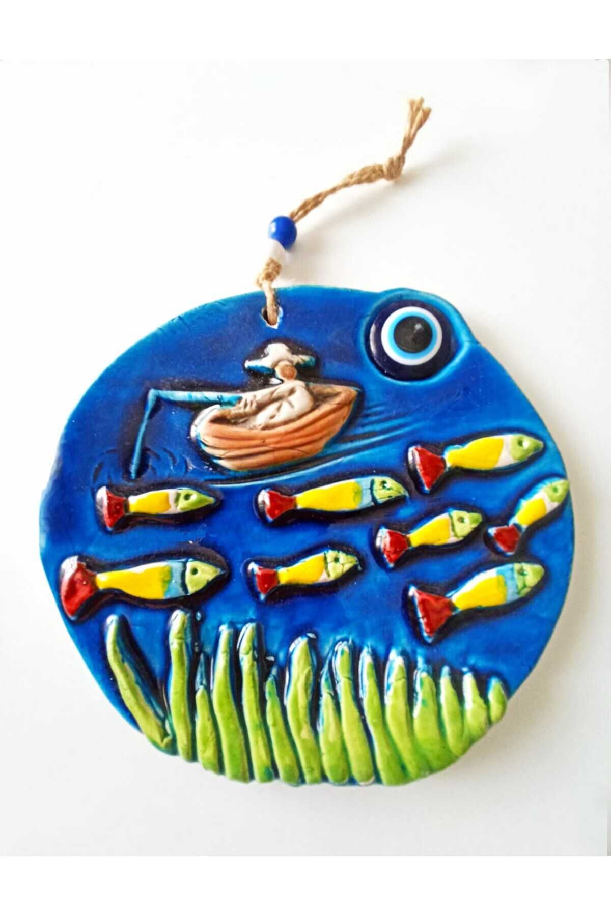 Kayıkçı Balık Deniz Temalı Jüt Ipli Teras Bahçe Balkon Yazlık Duvar Süsü