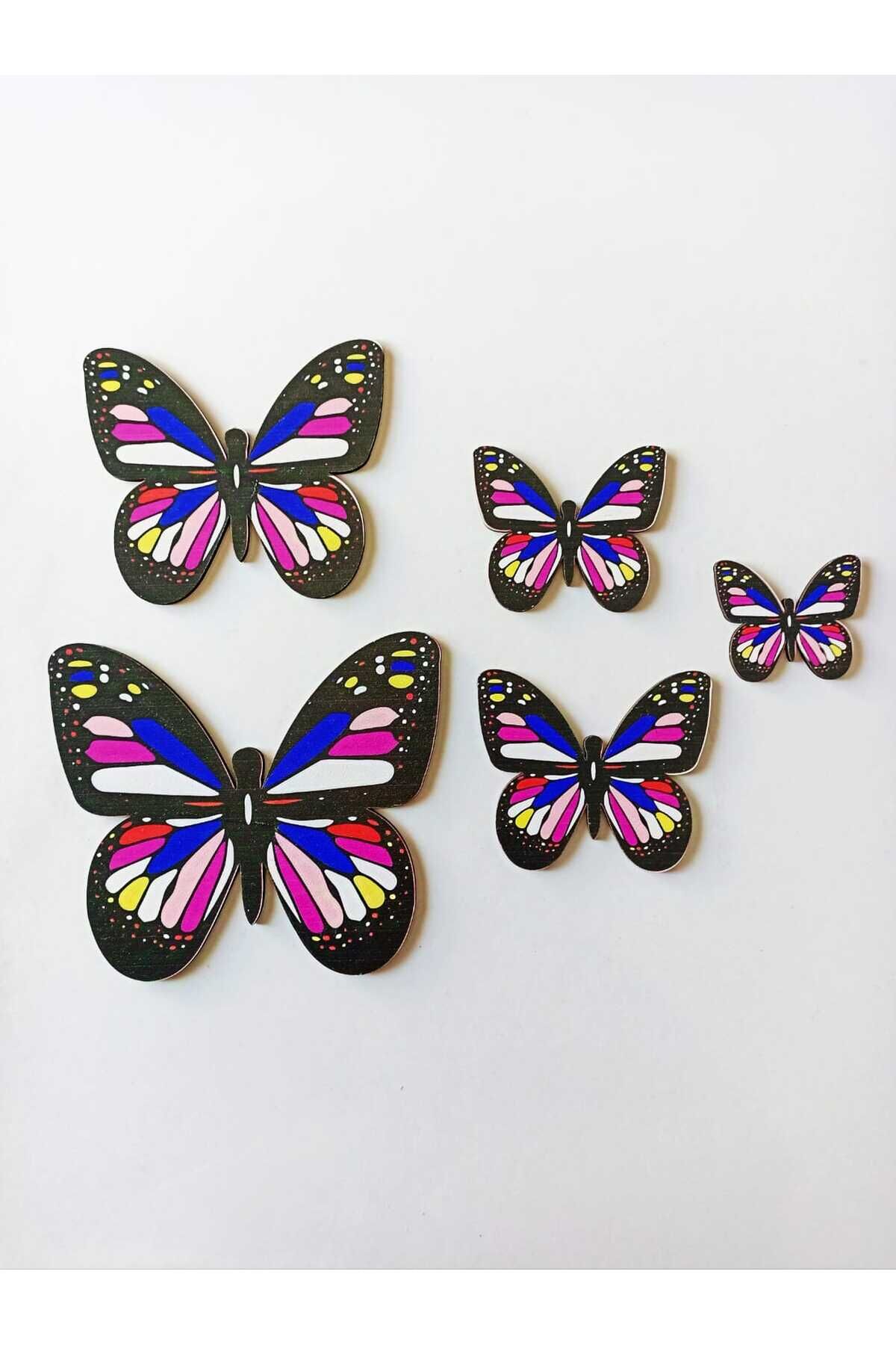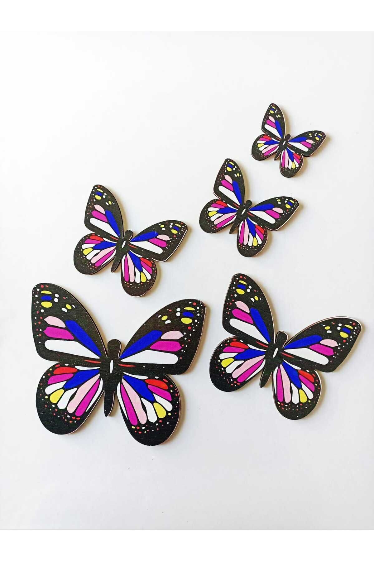 Kelebek Figürlü 5 Parça Ahşap Duvar Süsü, Siyah Renkli Dekoratif Parçalar