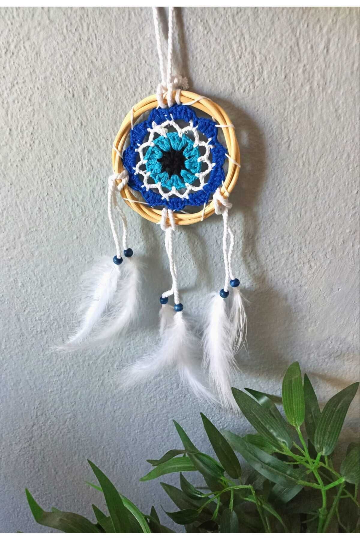 Makrome Nazar Boncuk Motifli Tüylü Düş Kapanı Kapı Bahçe Balkon Teras Duvar Dekorasyon Süsü