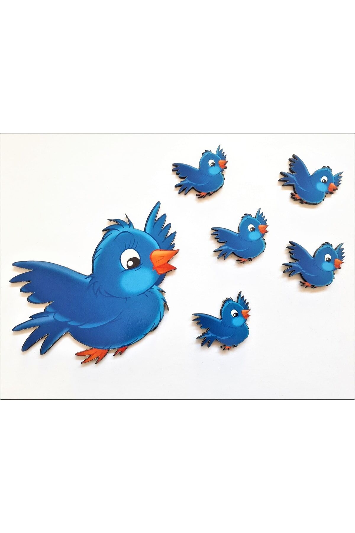 Büyük figür 14x10 cm, küçük figürler 4x4.5 cm ebatlarındadır.;Ürün içeriği 6 parçadır.;Arkaları çift taraflı bantlıdır.; 3 mm mdf kesim üzerindeki renkli kaplamalar solma ve kararma yapmaz.;Duvar, kapı ve dolap gibi yüzeylerde kullanılabilir.