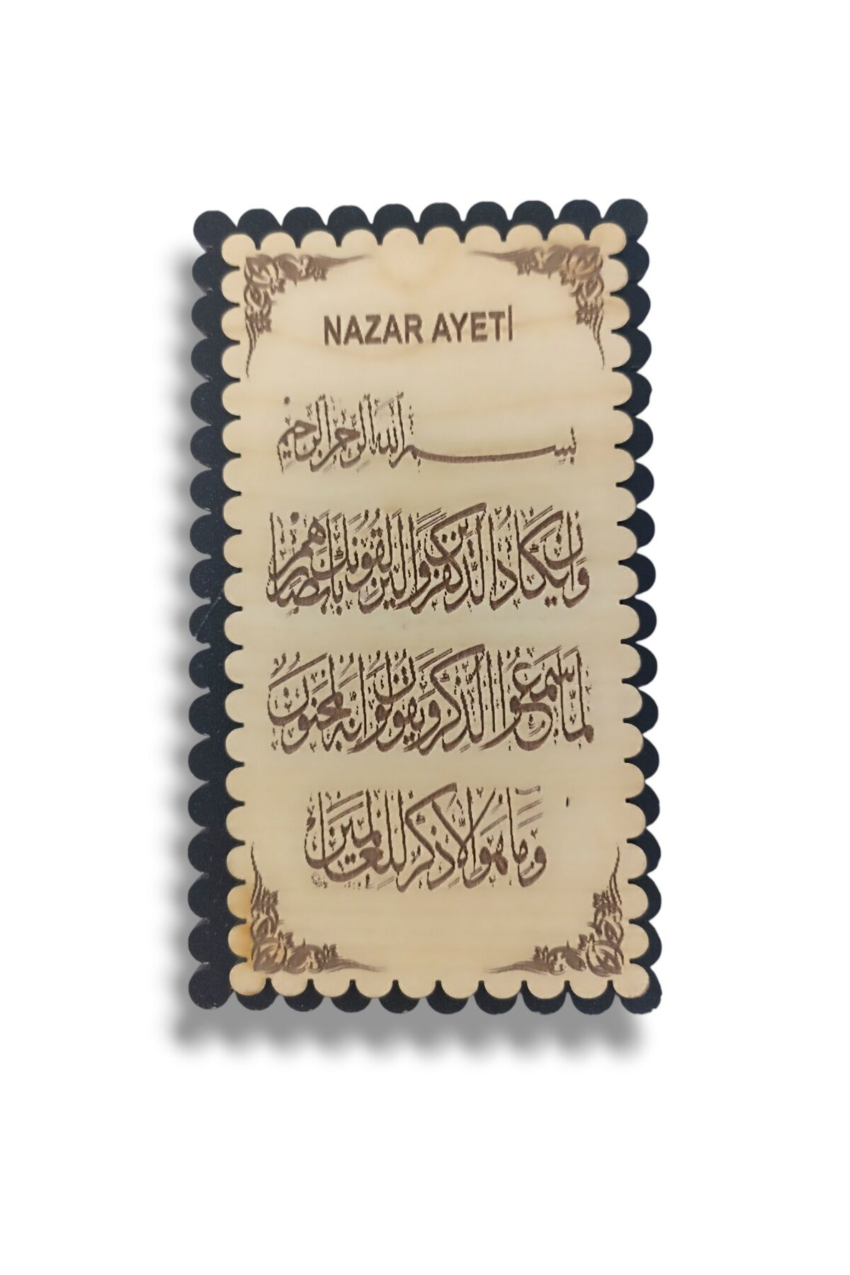 Nazar Ayeti Yazılı Ahşap Mıknatıslı Buzdolabı Magneti