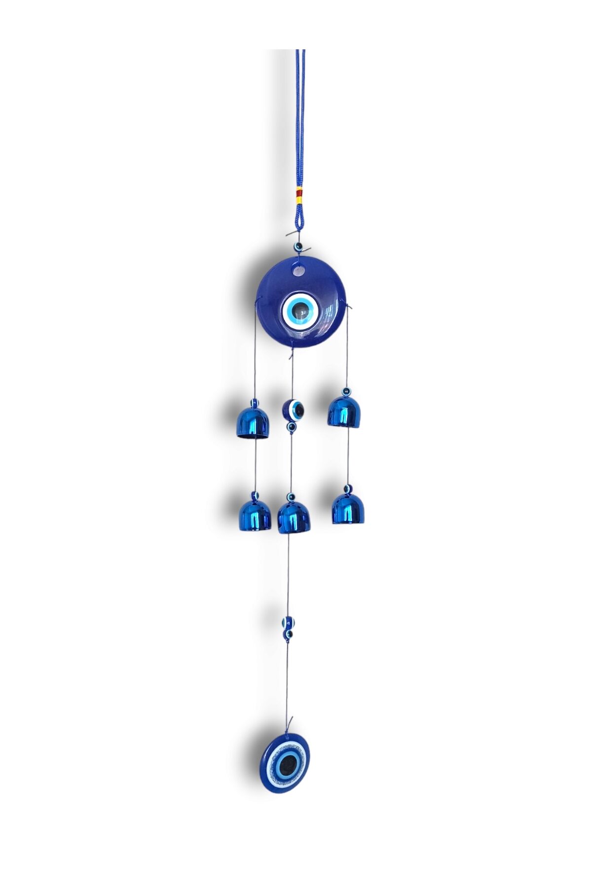 Nazar Boncuğu Figürlü Metal Çanlı Uzun Rüzgar Çanı Bahçe Balkon Teras Yazlık Süsü