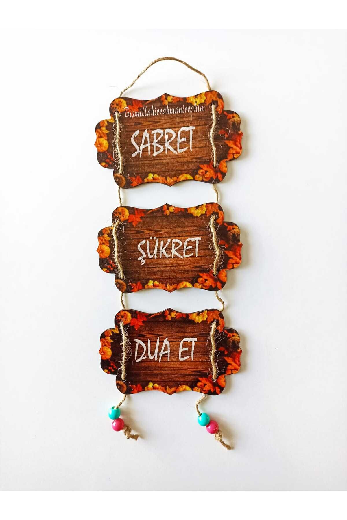 Sabret Şükret Dua Et Yazılı Ahşap Dekoratif Duvar Süsü