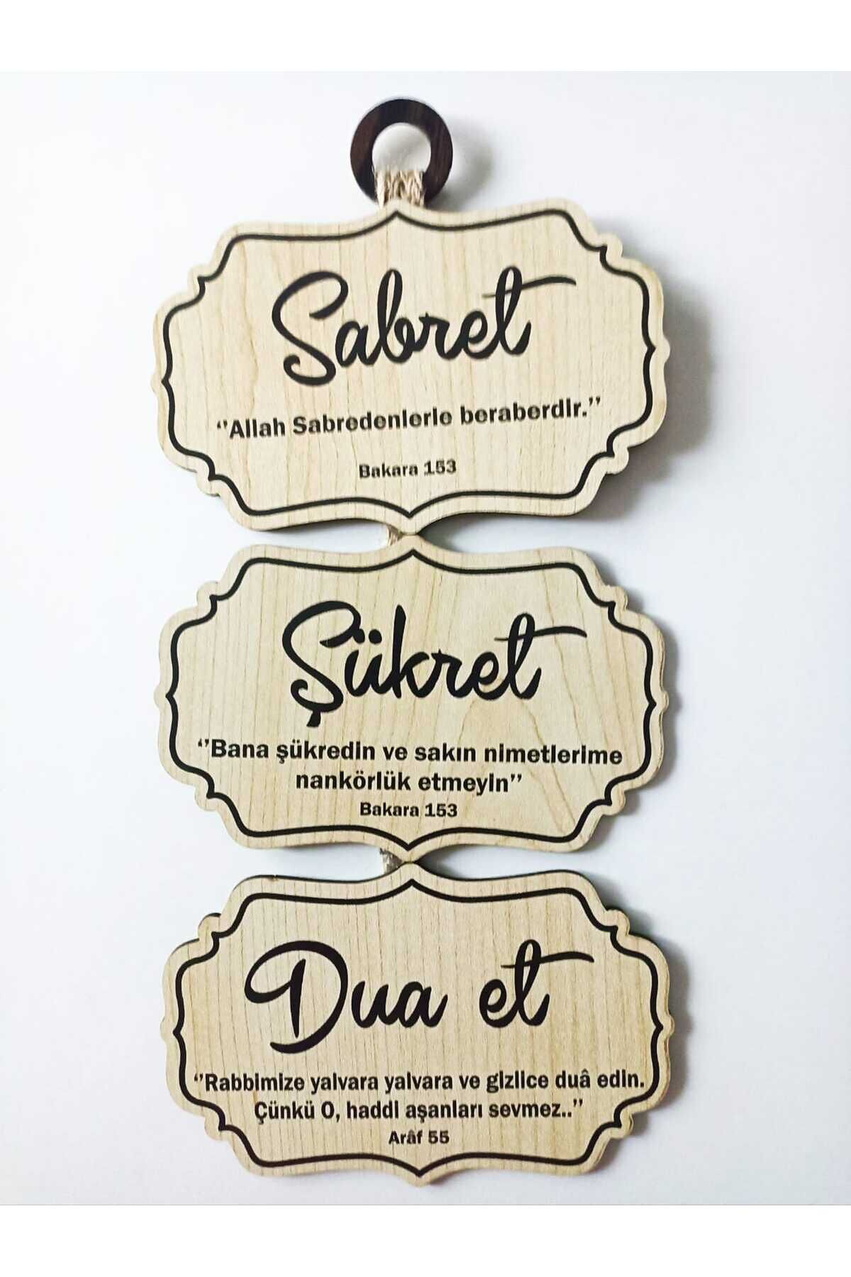 Sabret Şükret Dua Et Yazılı Ayetli Ahşap Dekoratif Duvar Süsü