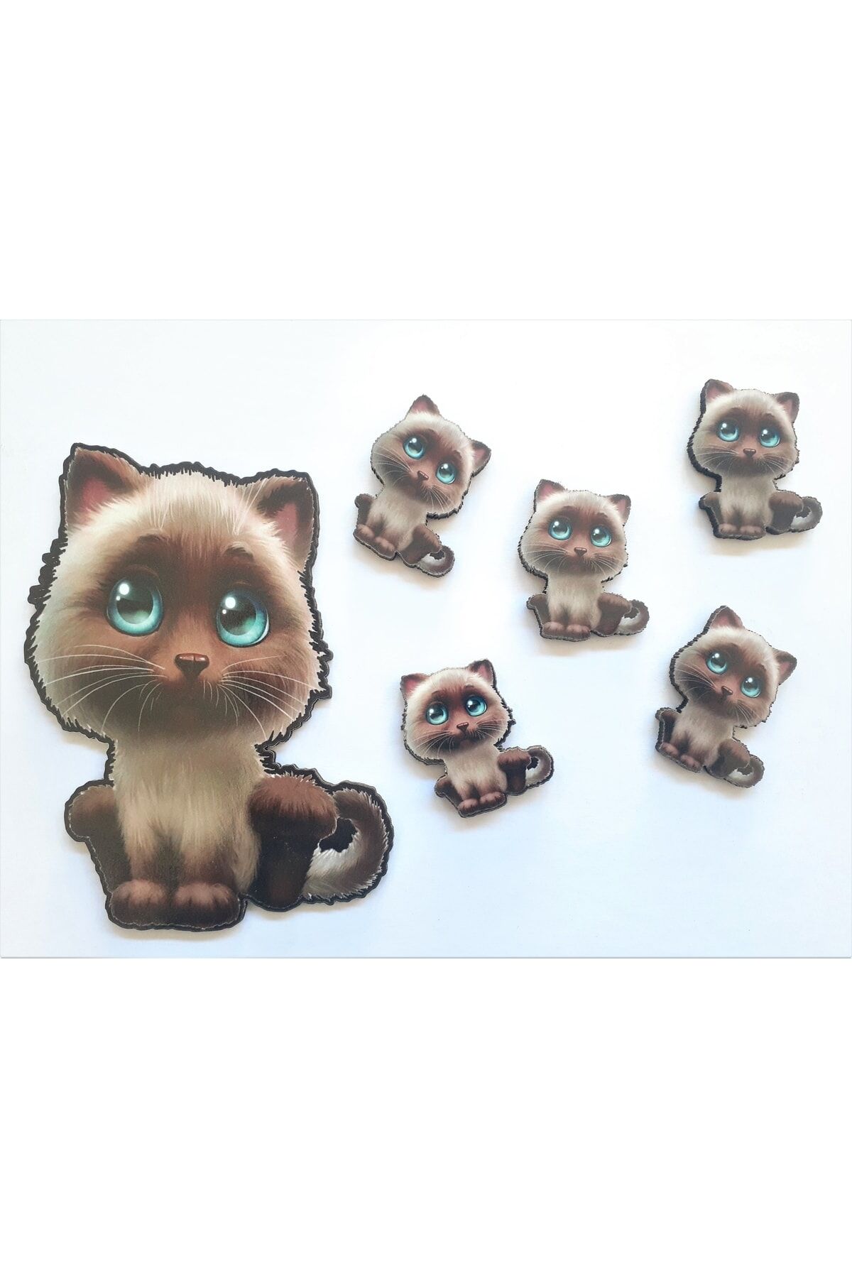 Büyük figür 15 cm, küçük figürler 5 cm ebatlarındadır.;Ürün içeriği 6 parçadır.;Arkaları çift taraflı bantlıdır.; 3 mm mdf kesim üzerindeki renkli kaplamalar solma ve kararma yapmaz.;Duvar, kapı ve dolap gibi yüzeylerde kullanılabilir.