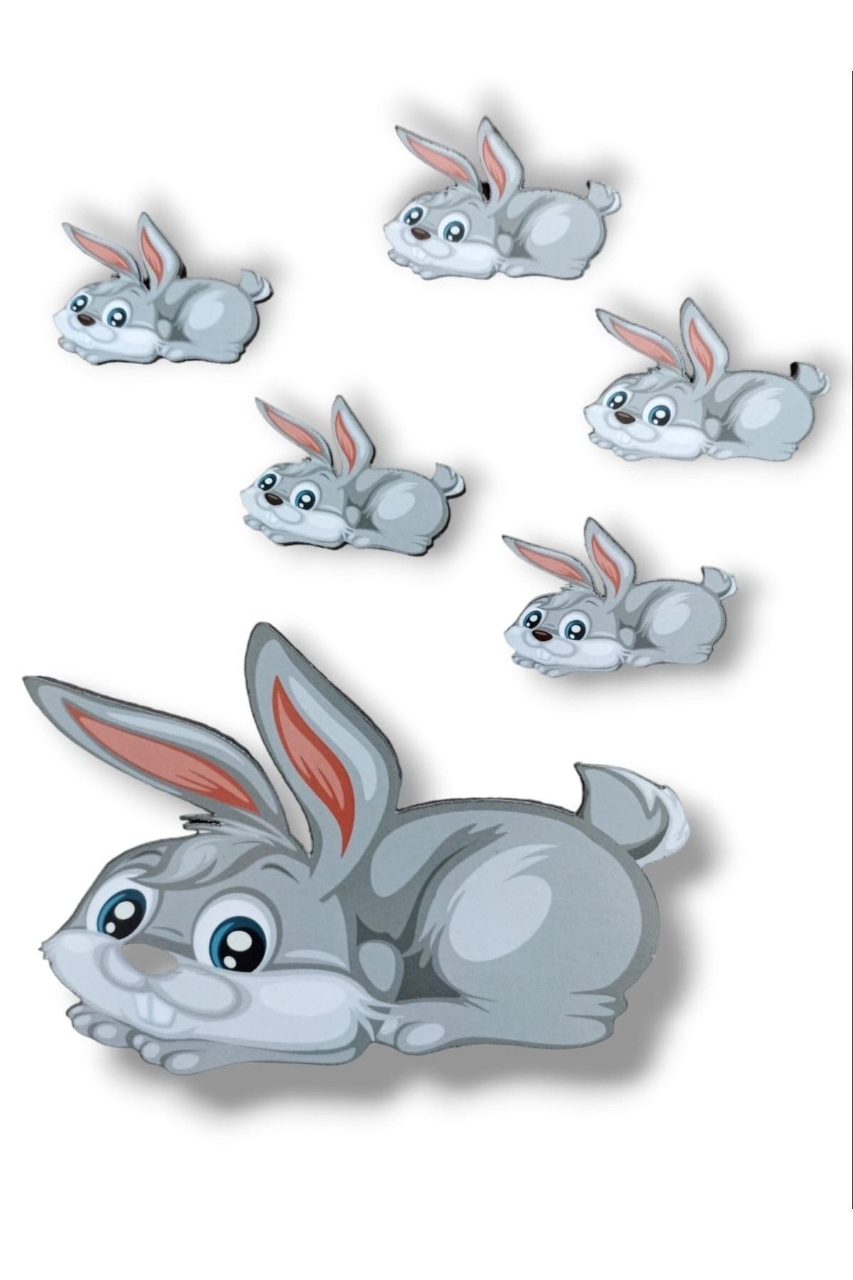 Sevimli Tavşan Figürlü Kapı Duvar Dolap Çocuk Odası Ahşap Yapıştırma Süsü Duvar Dekorasyon