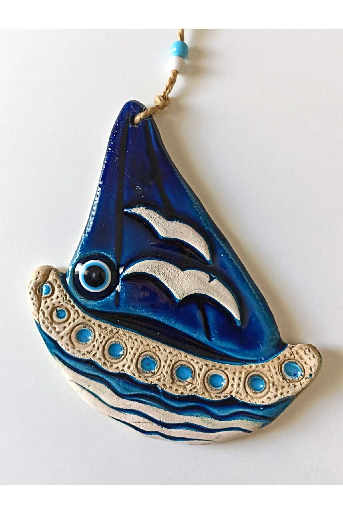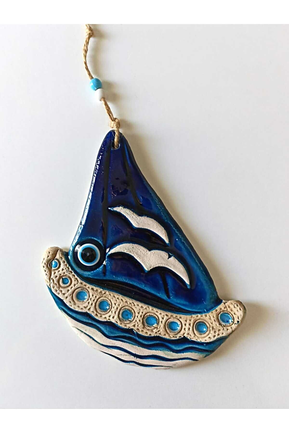 Yelken Figürlü Nazar Boncuklu Jüt Ipli Teras Bahçe Balkon Yazlık Duvar Süsü